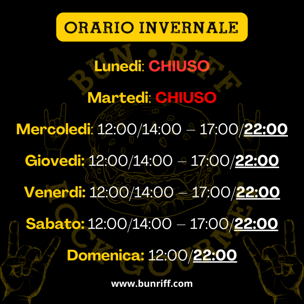 Venerdi: 12:00/ 14:00 – 17:00/22:00